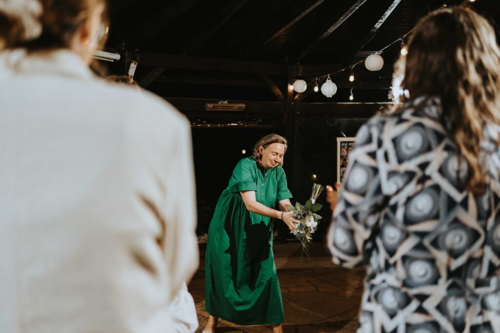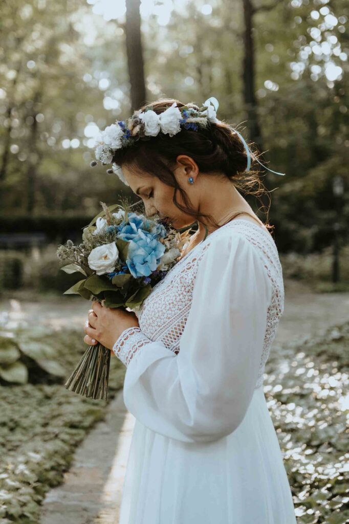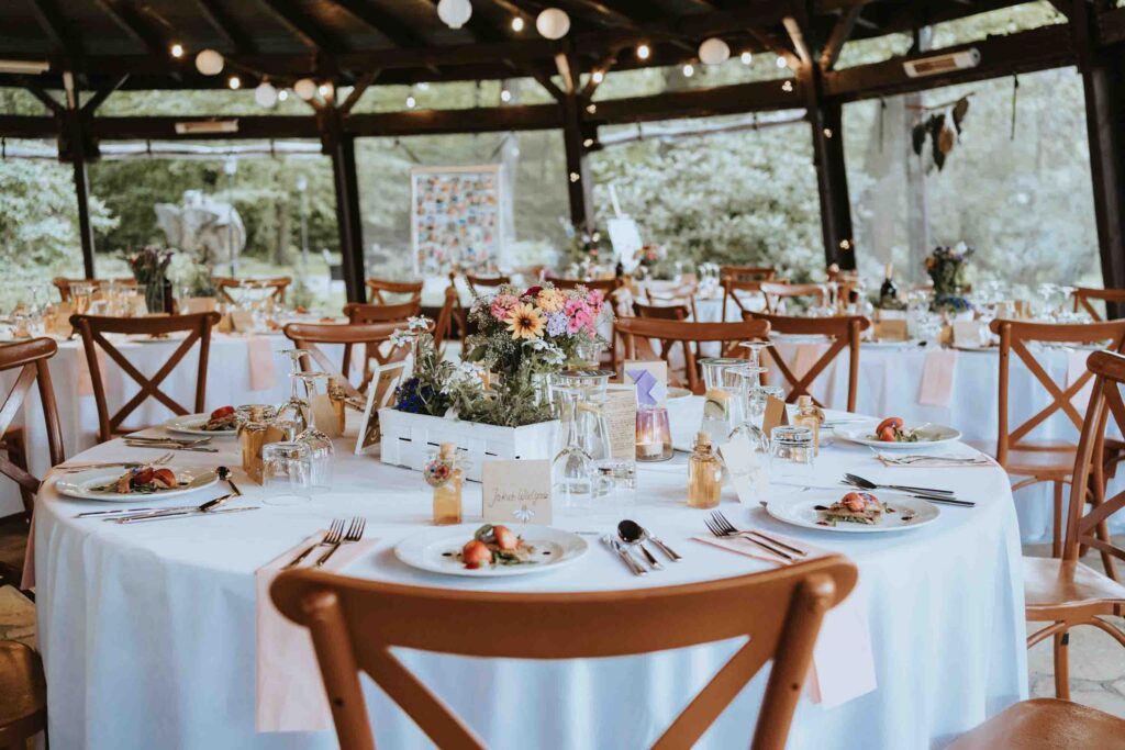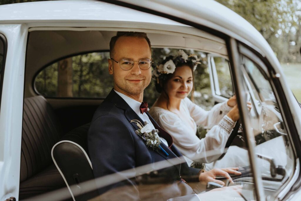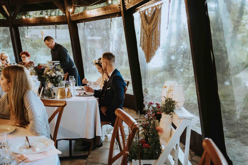 Nasza Para to miłośnicy rowerwych wycieczek i szlaków górskich. W dekoracje wystroju stołów wpletli akcent z ich wspólnych wypraw, a także umieścili ręcznie malowany na różowo rower, udekorowany kwiatami. Większość florystycznych dekoracji sama wykonała Pamela 😀